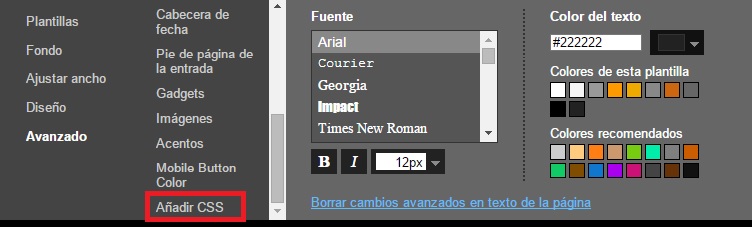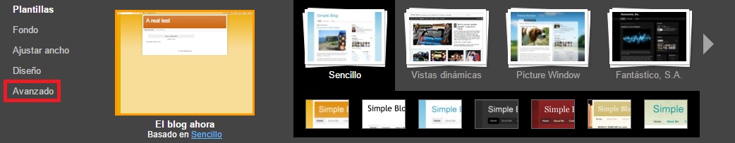 Segundo. Una vez dentro se nos abrirá el diseñador de plantillas de Blogger. Pinchamos en la opción de menú que se llama Avanzado.