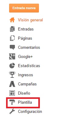 Primero. Tenemos que acceder a nuestro blog accediendo a la página de administración habitual http://www.blogger.com, y pinchamos en la opción de menú que se llama Plantilla.